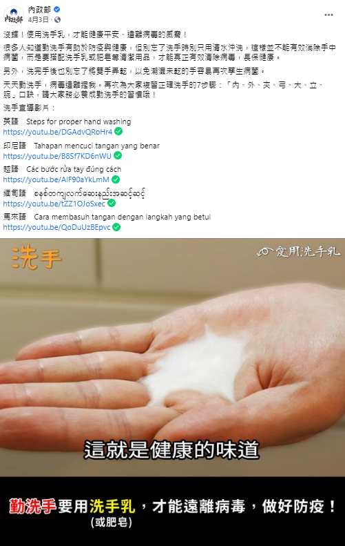 [吹水一聞] 台灣內政部超癲的梘液洗手宣傳!